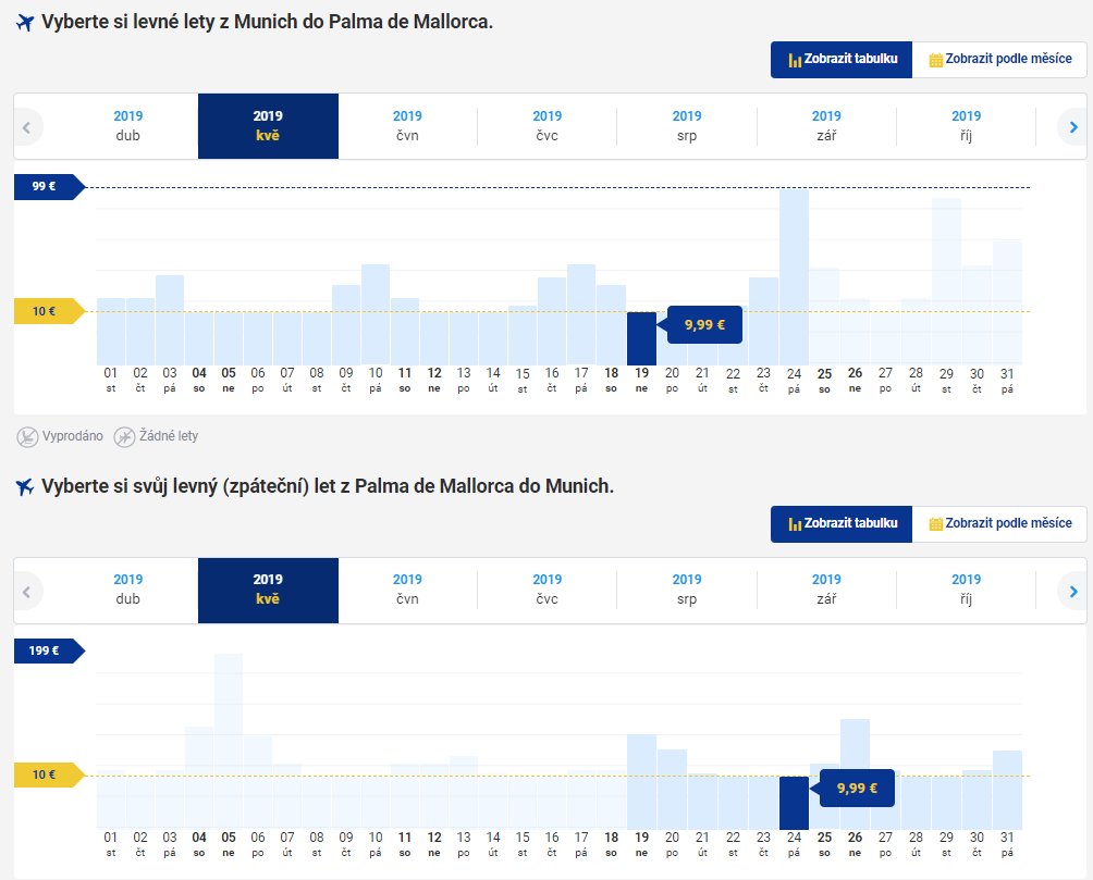 Díky kombinaci levných letenek z Mnichova na Mallorcu (20 Euro) a využití slevy na Booking, nebo Airbnb lze pořídit 6-ti denní dovolenou již od 2 187 Kč (letenky+ubytování+snídaně).