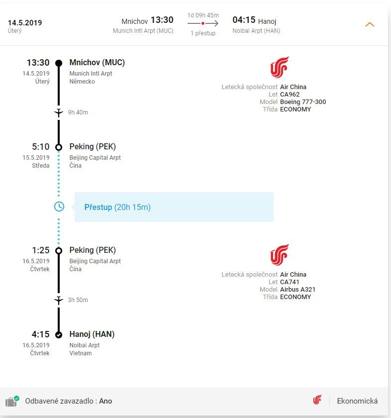Levné letenky z Mnichova do Vietnamu. Se zastávanou v Pekingu.