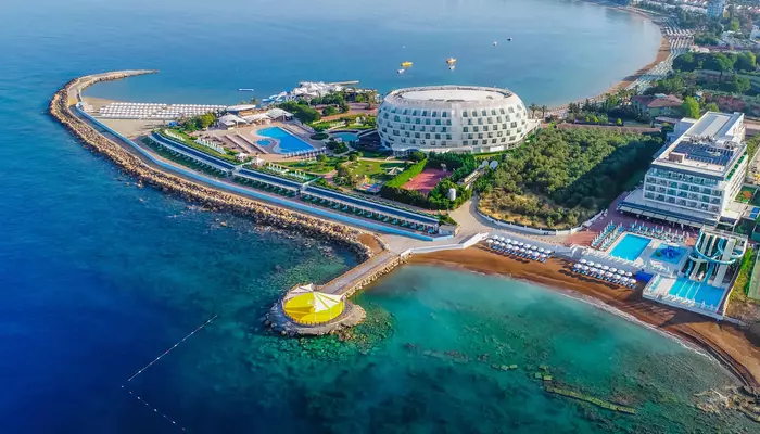 • Popis hotelu: Gold Island Selected je luxusní hotel situovaný na poloostrově v letovisku Avsallar. Nabízí panoramatický výhled na moře, soukromou pláž, několik bazénů a prvotřídní služby.​