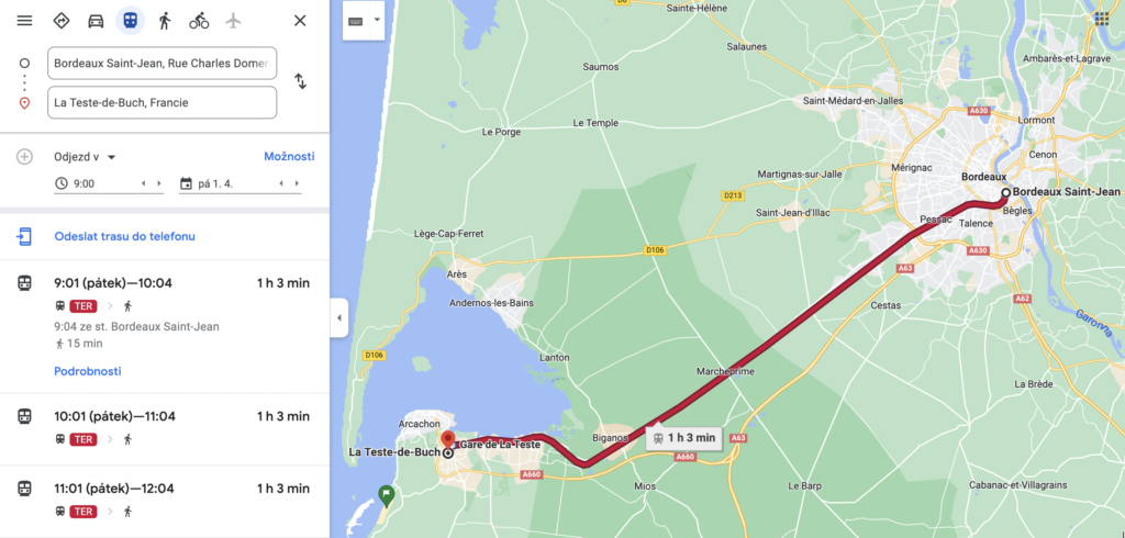 Dostat se tam můžete z přímo z centra Bordeaux vlakem. Cesta vám zabere zhruba 1 hodinu.